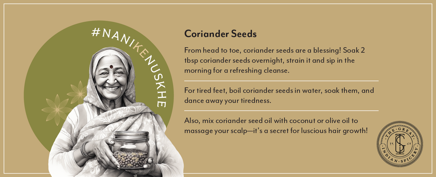 - Our farm fresh Coriander seeds have a citrusy and slightly sweet aroma with a light, earthy flavor